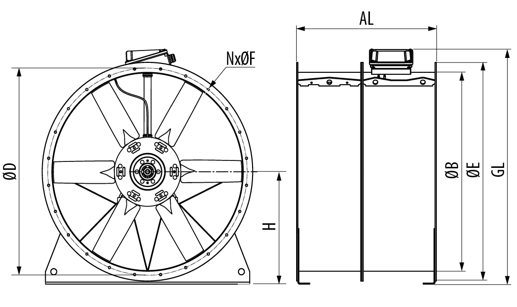 * Abmessung entsprechend dem größten für den Bereich verfügbaren Motor. Siehe Easyvent.