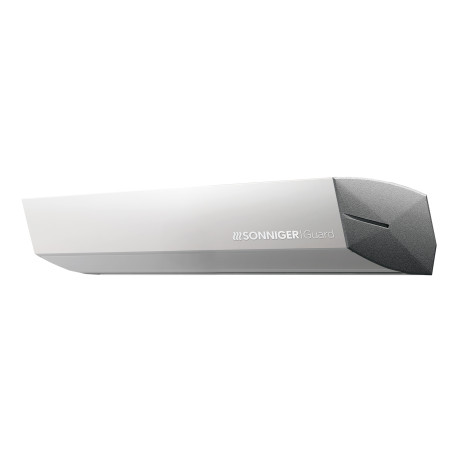Der Luftschleier mit Heizregister verhindert das Eindringen kalter Luft von außen und erwärmt die Raumluft.
