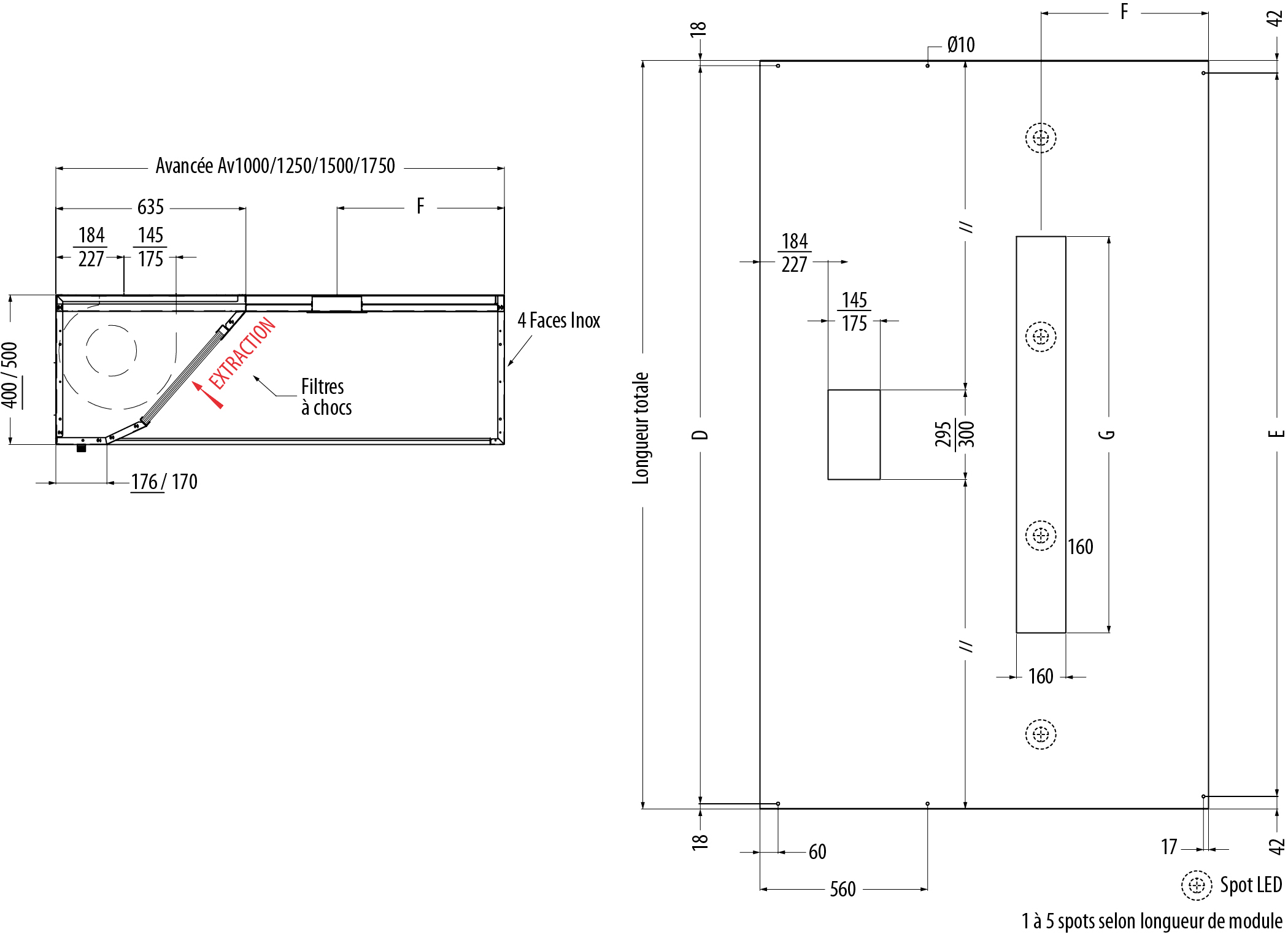 Unterstrichen = Abmessungen des Modells 400 - Nicht unterstrichen = Modell 500