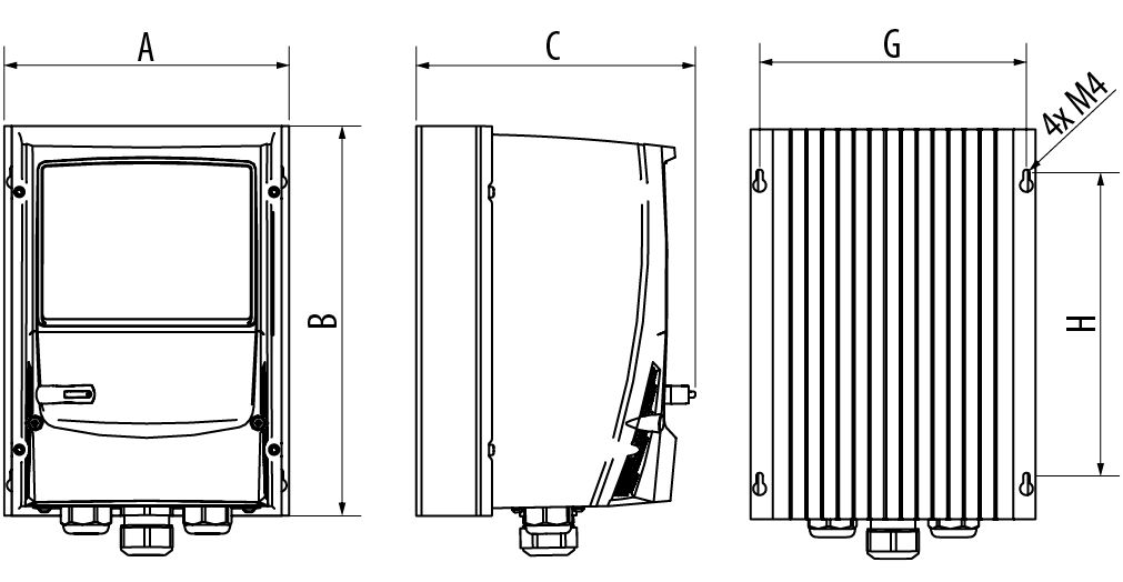 | Tamaño | A | B | C(1) | G | H | Peso (kg) |