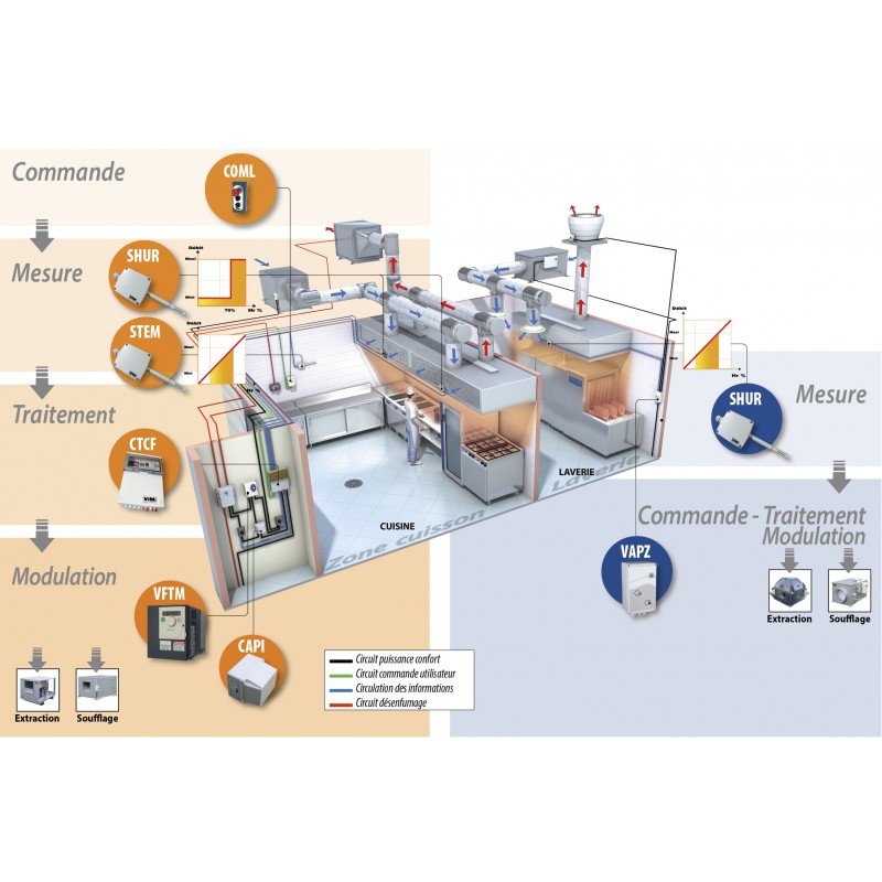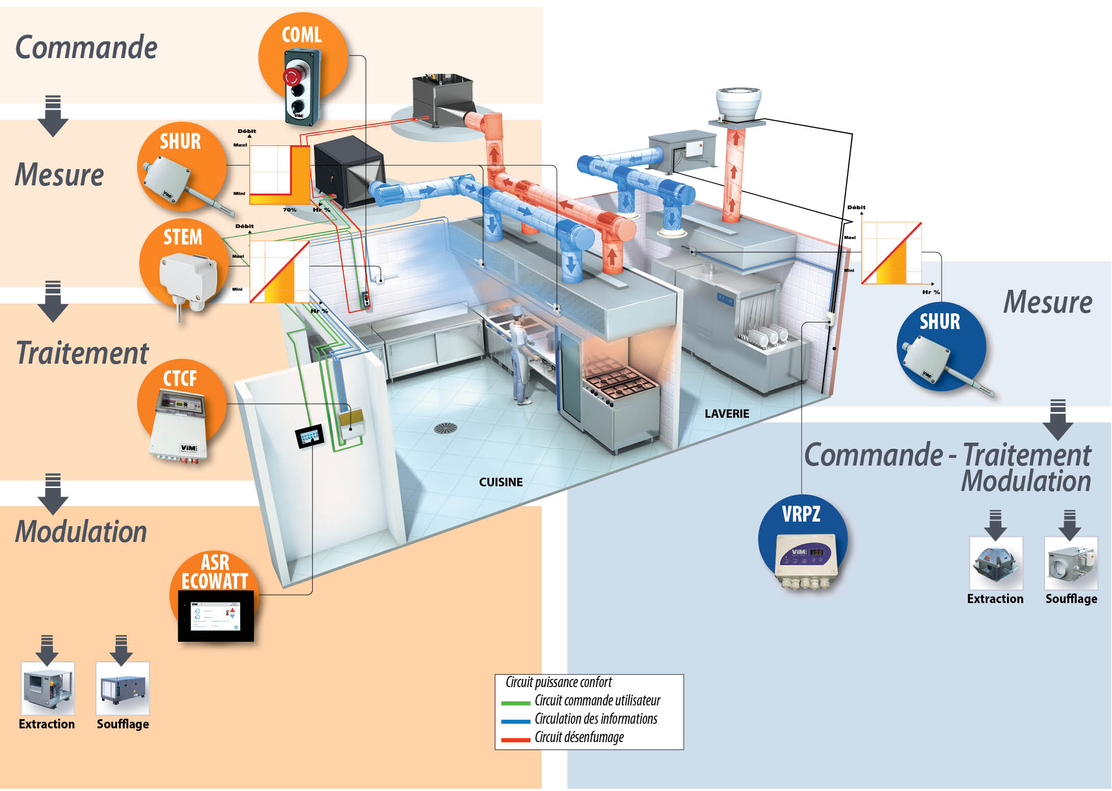 Sistema automático de gestión de la extracción e introducción de aire en cocinas profesionales.