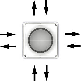| Zonder schot voor gebruik bij afzuiging of 4-weg blazen | Met deflector aan één kant van de mond voor 3-weg blazen | Met deflector in de mondhoek voor 2-weg blazen | |