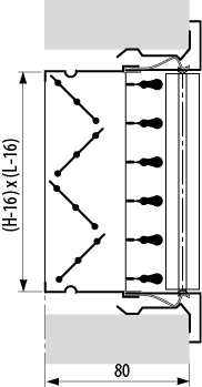 L > 1250 mm: samengesteld uit meerdere elementen met montagesysteem.