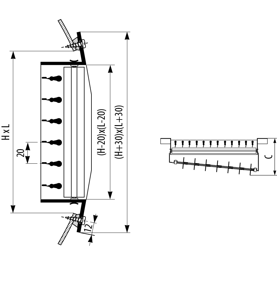 | Lengte x hoogte | C | Ø buis | |